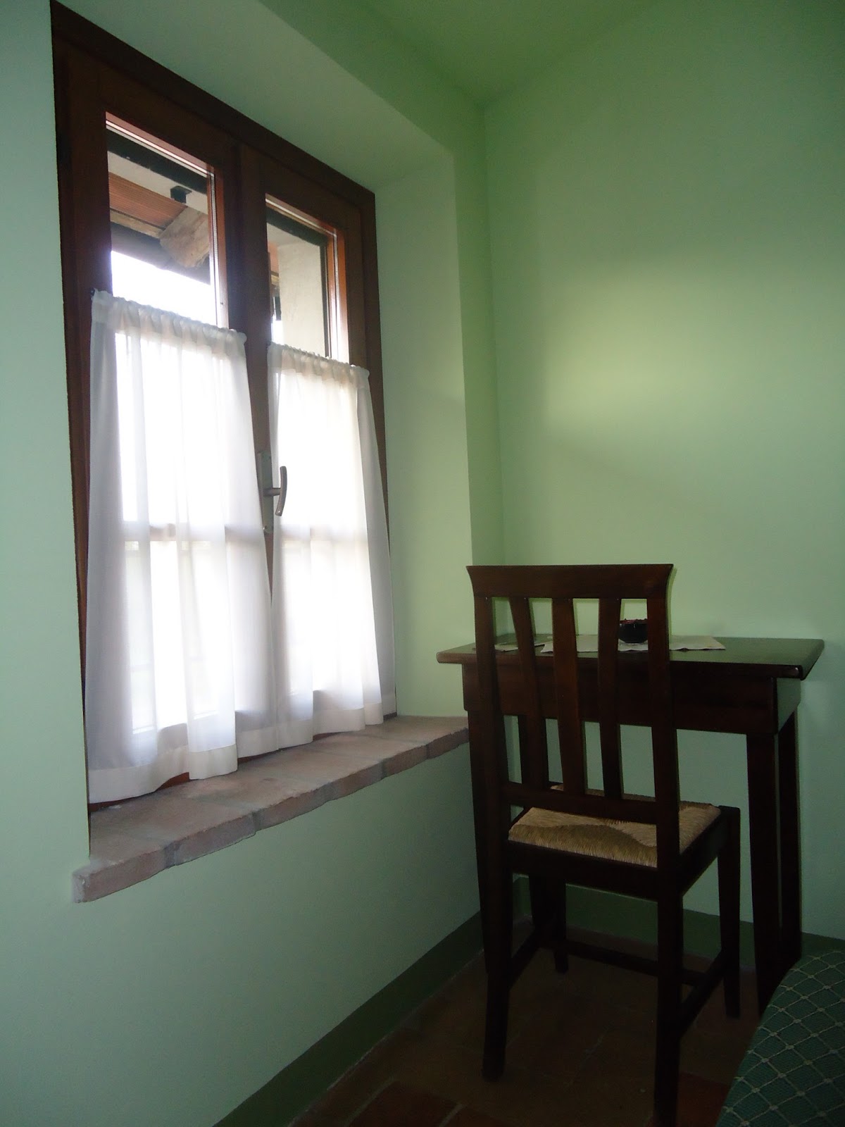 Travi a vista e arredo in linea con quello che era l'edificio: mobili spartani ma allo stesso tempo eleganti. All'interno dell'armadio alcune coperte in più, necessarie se si è particolarmente freddolosi, e l'asciugacapelli perfettamente funzionante.